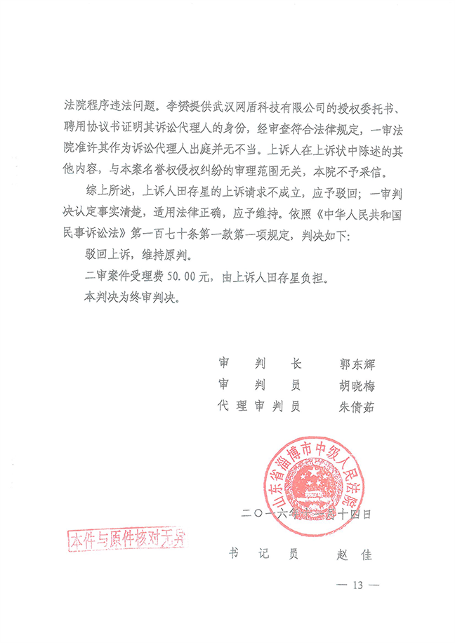 淄博中院判决书-田存星